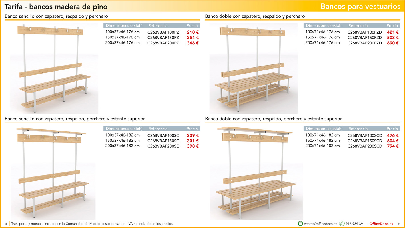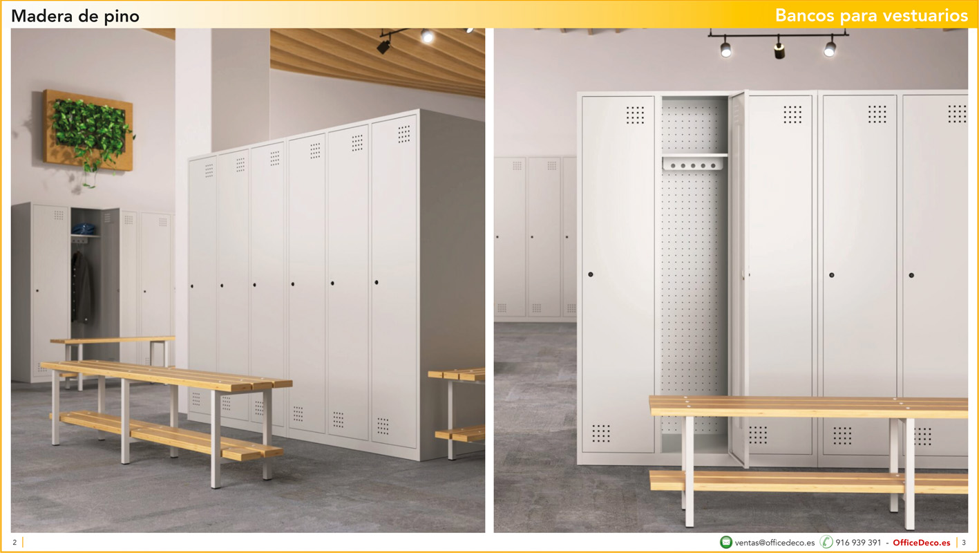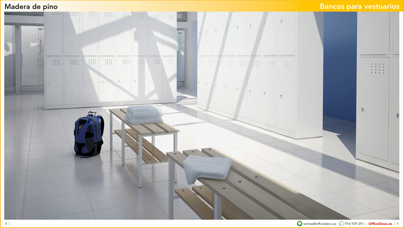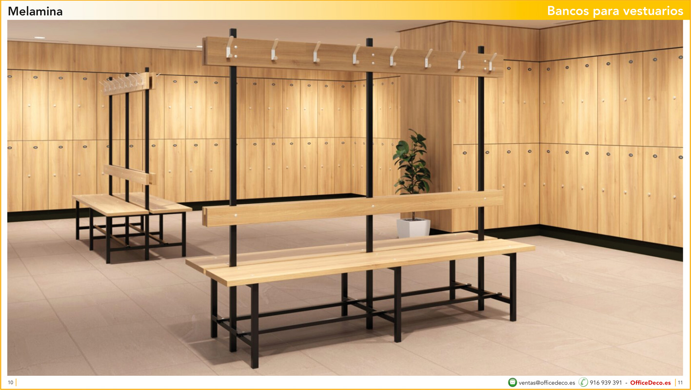 Una amplia colección de líneas de bancos para vestuarios.. Infinitas variantes a un precio sin competencia. Montaje y transporte gratuito en la Comunidad de Madrid, resto consultar.