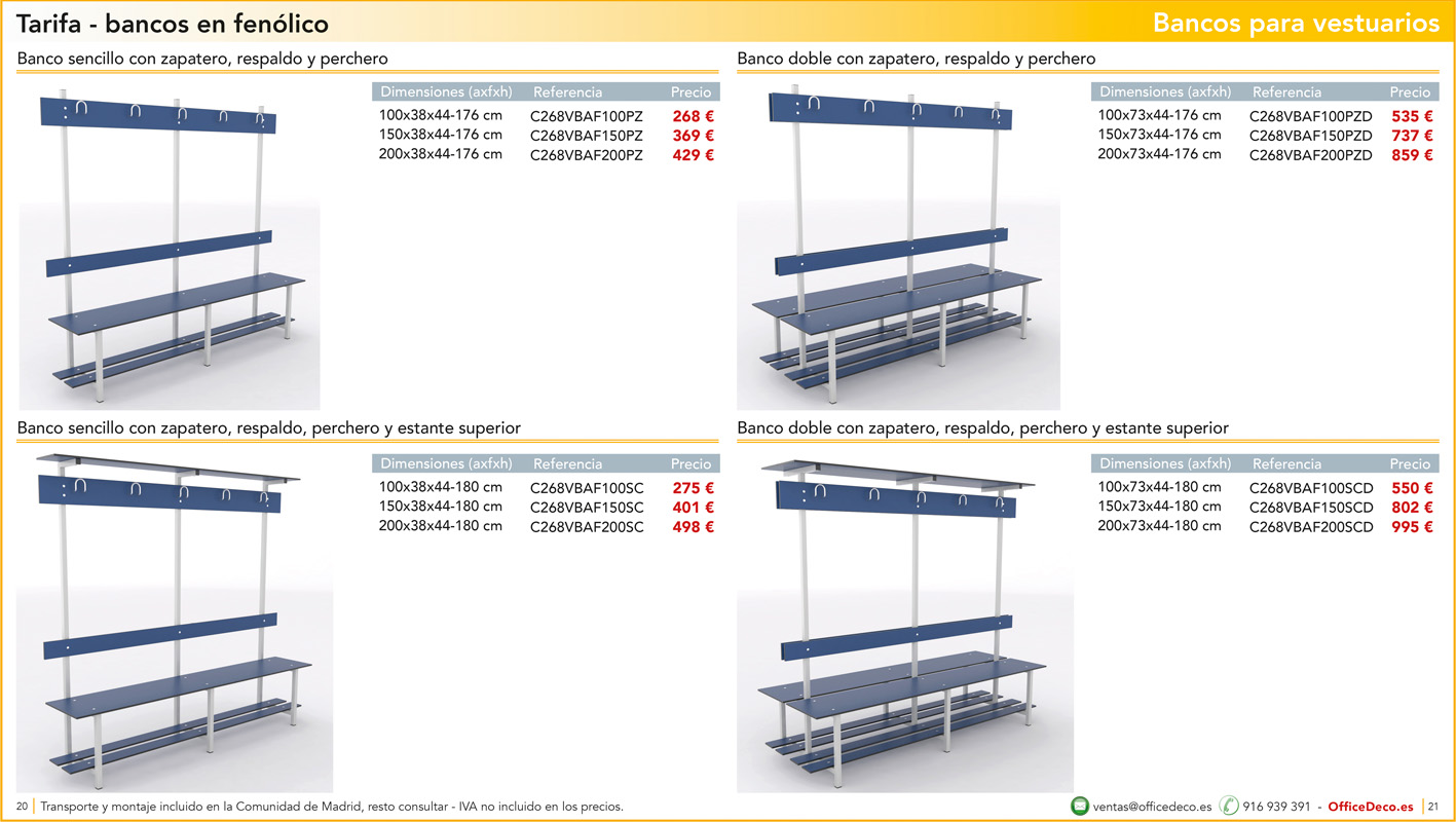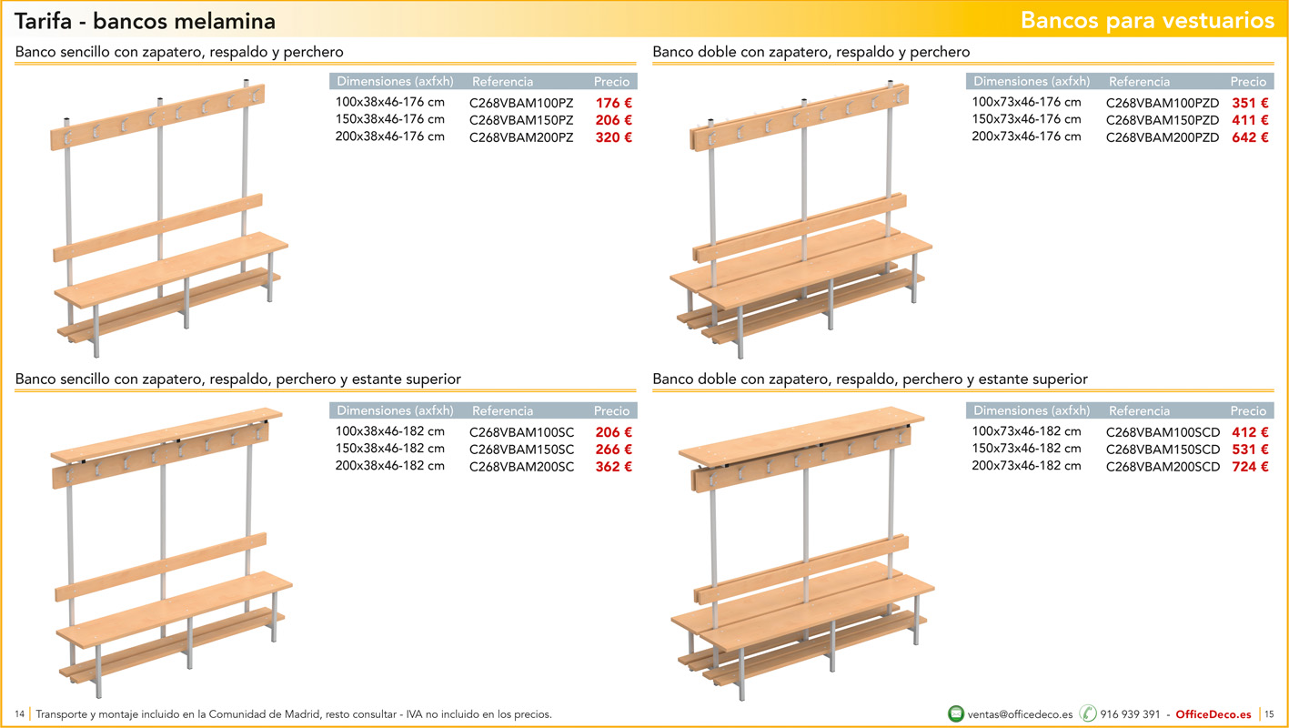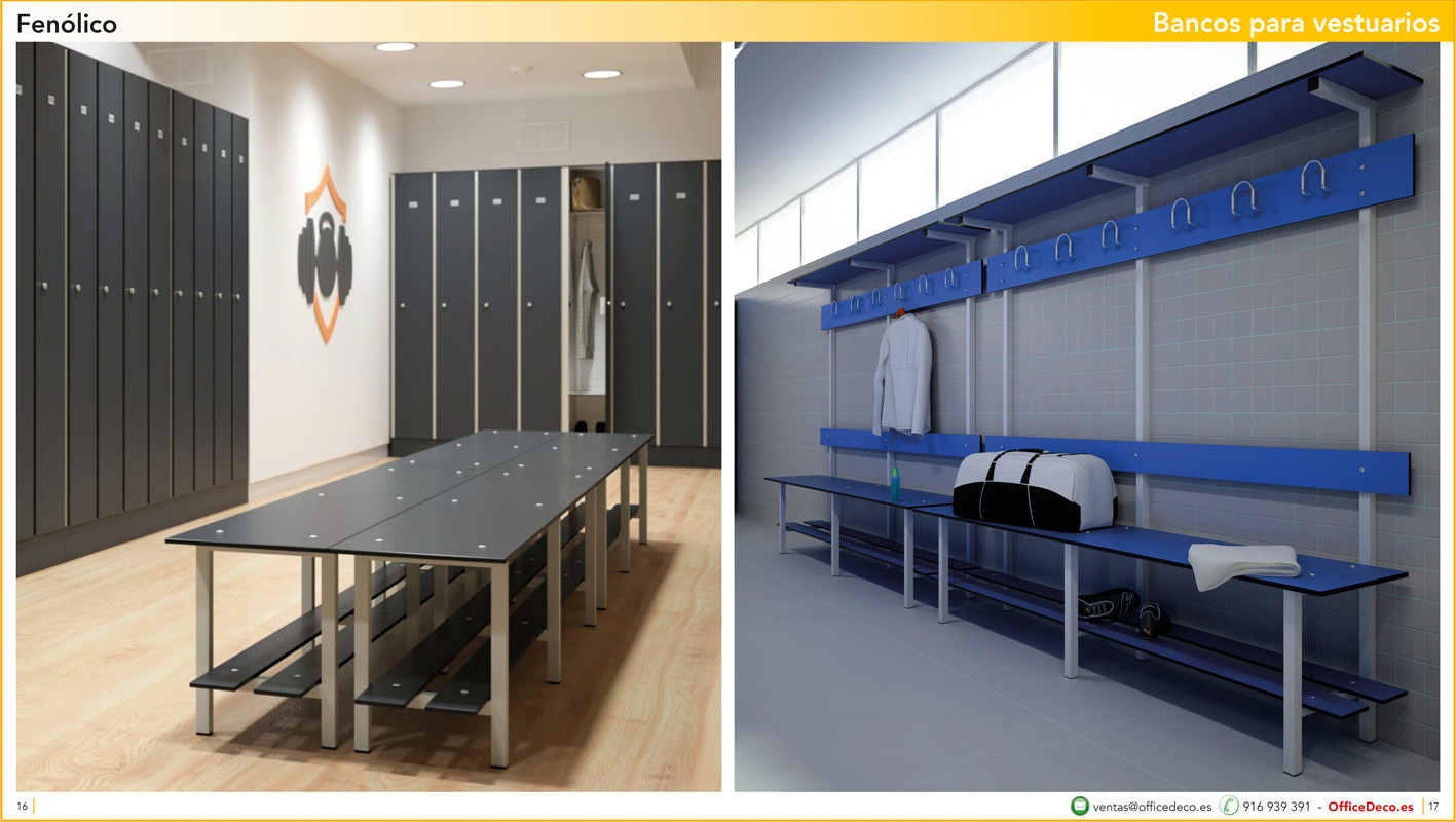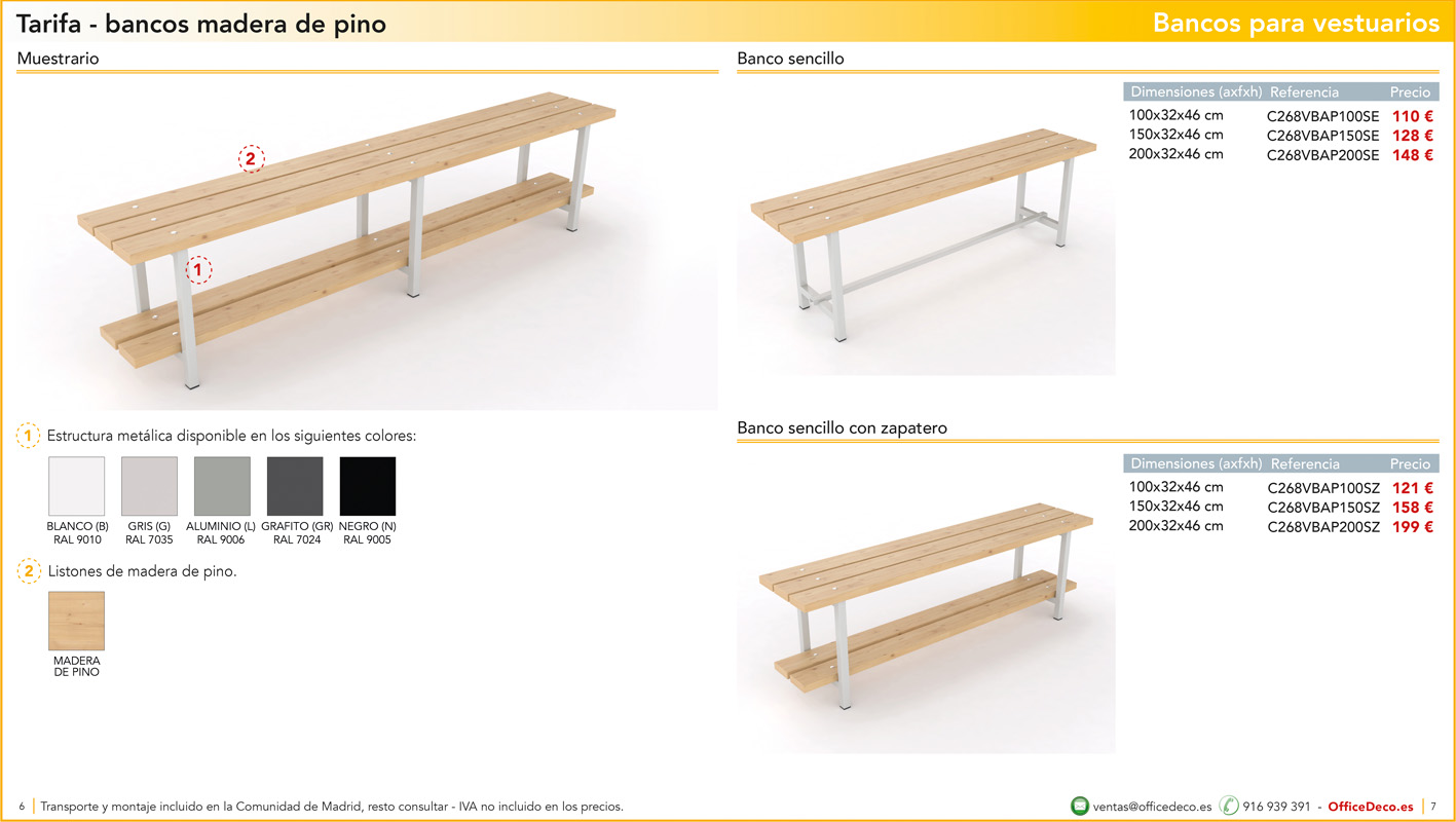 Una amplia colección de líneas de bancos para vestuarios.. Infinitas variantes a un precio sin competencia. Montaje y transporte gratuito en la Comunidad de Madrid, resto consultar.