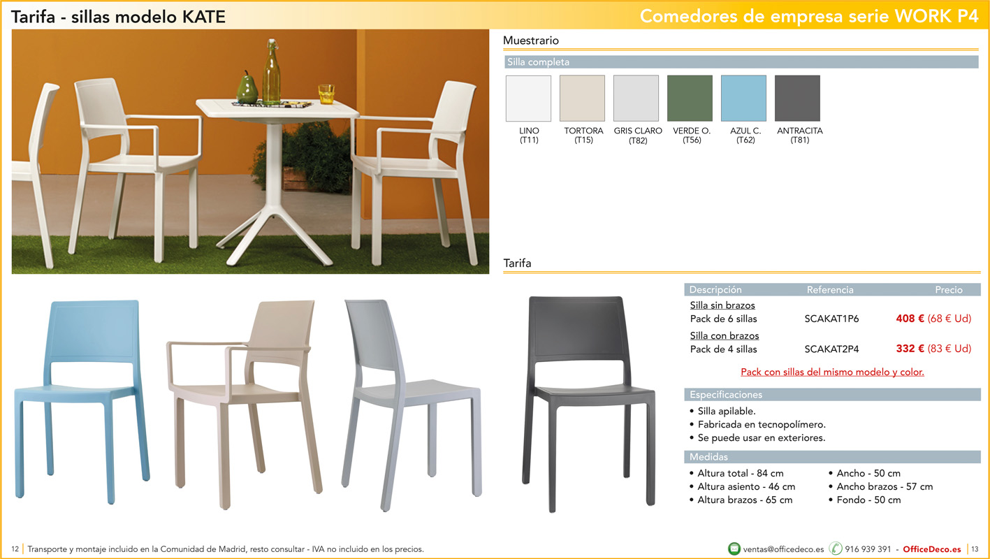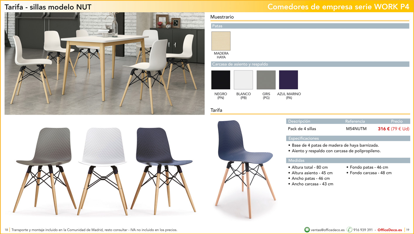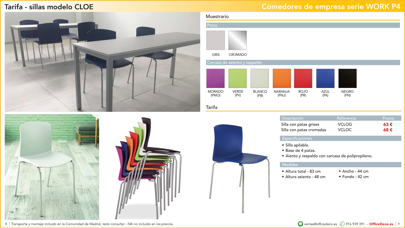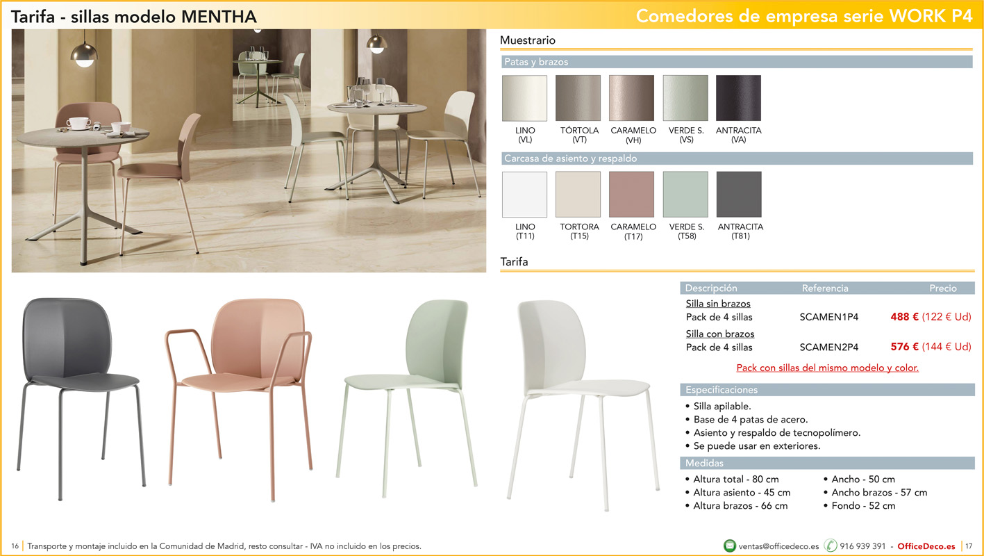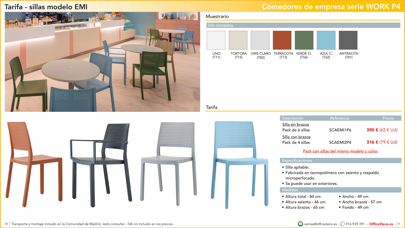 Una amplia colección de líneas de mobiliario para comedores de empresa y escolar serie WORK P4 con infinitas variantes a un precio sin competencia. Montaje y transporte gratuito en la Comunidad de Madrid, resto consultar.