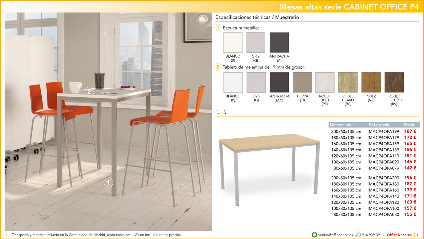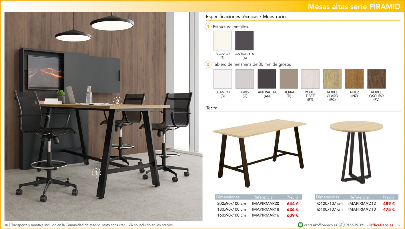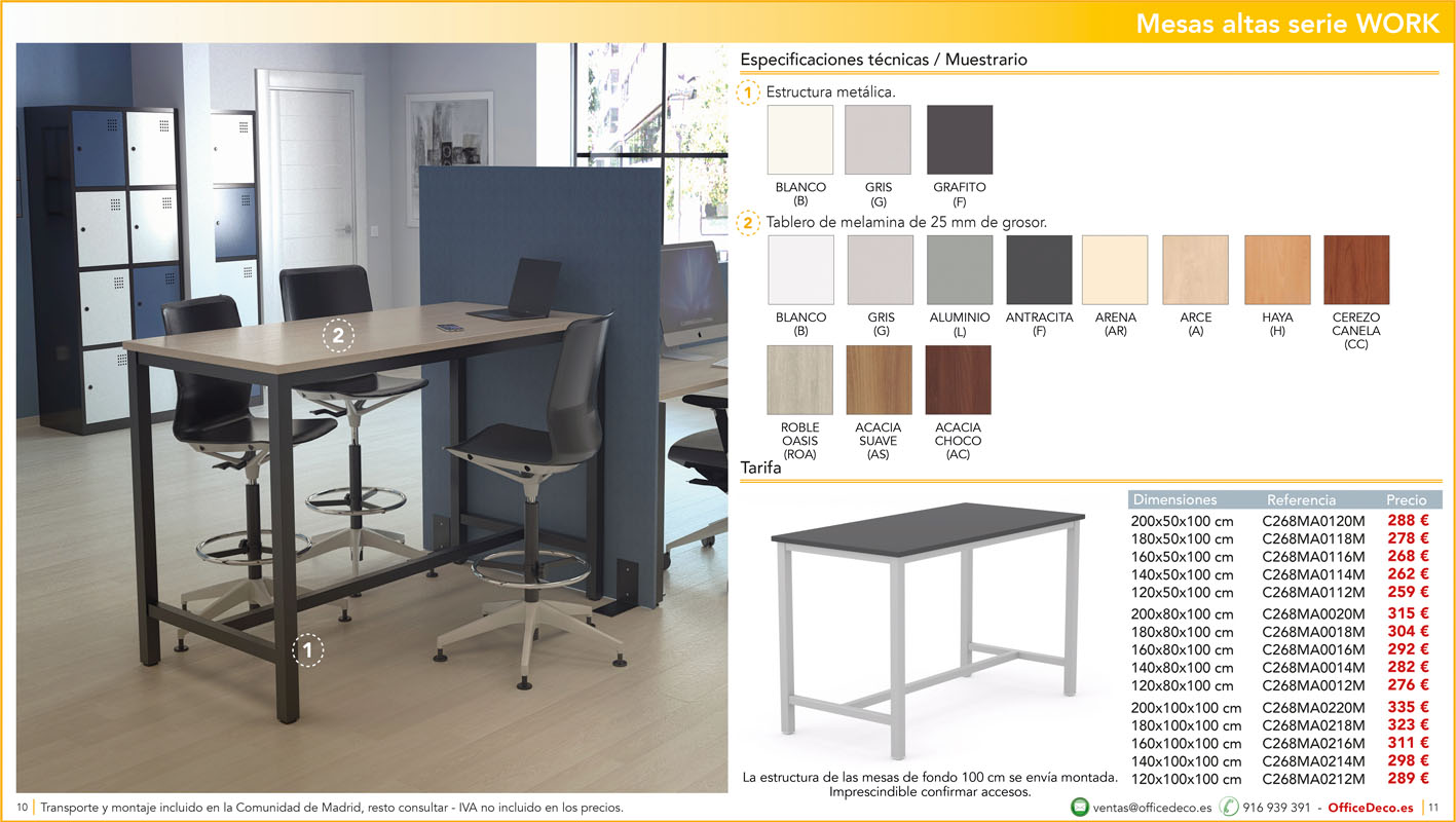 Una amplia colección de mesas para office con infinitas variantes a un precio sin competencia. Montaje y transporte gratuito en la Comunidad de Madrid, resto consultar.