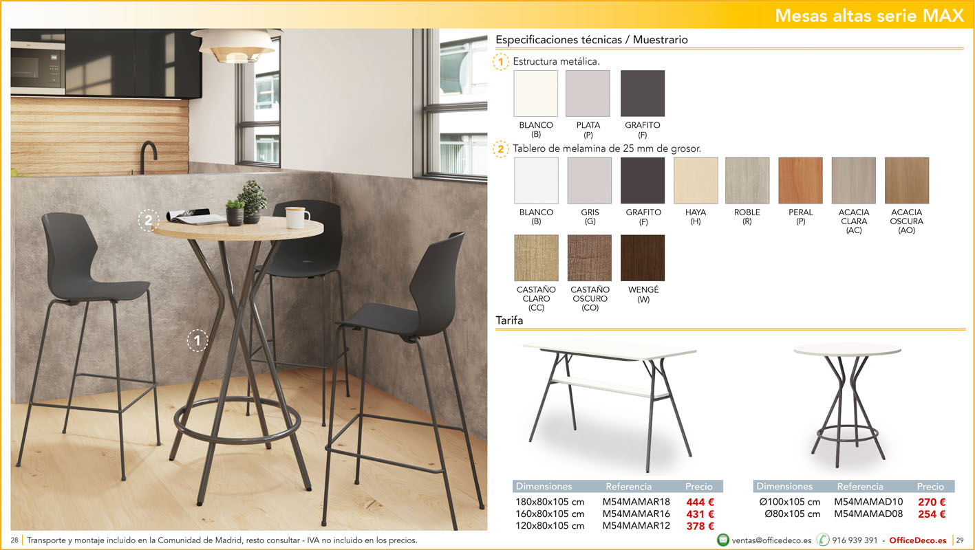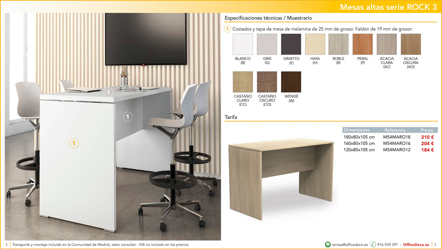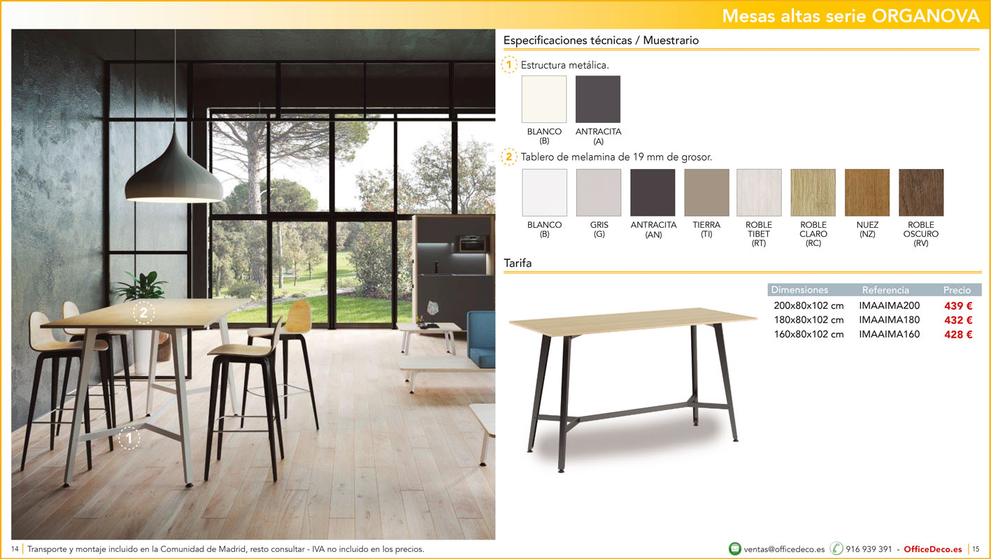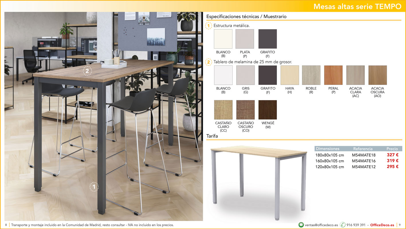 Una amplia colección de mesas para office con infinitas variantes a un precio sin competencia. Montaje y transporte gratuito en la Comunidad de Madrid, resto consultar.