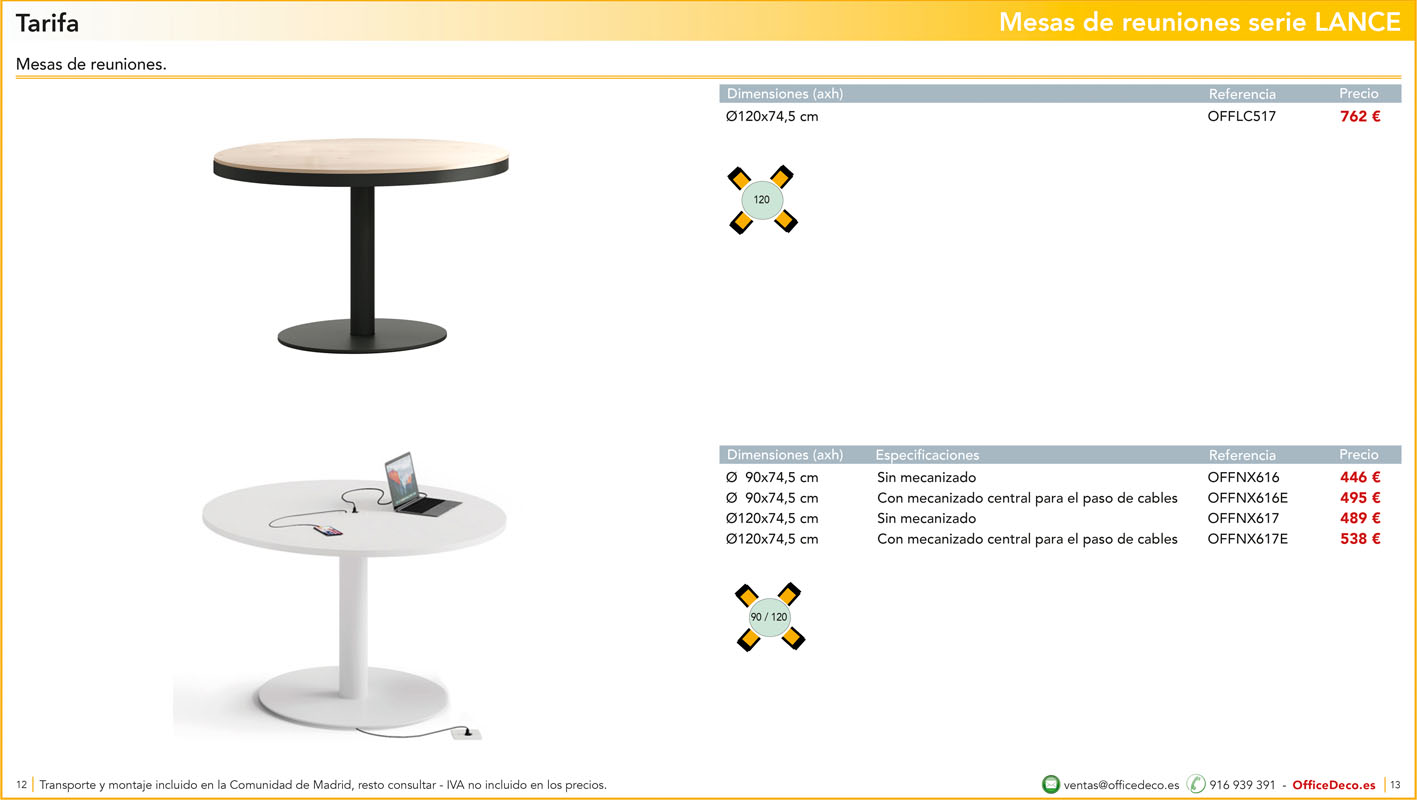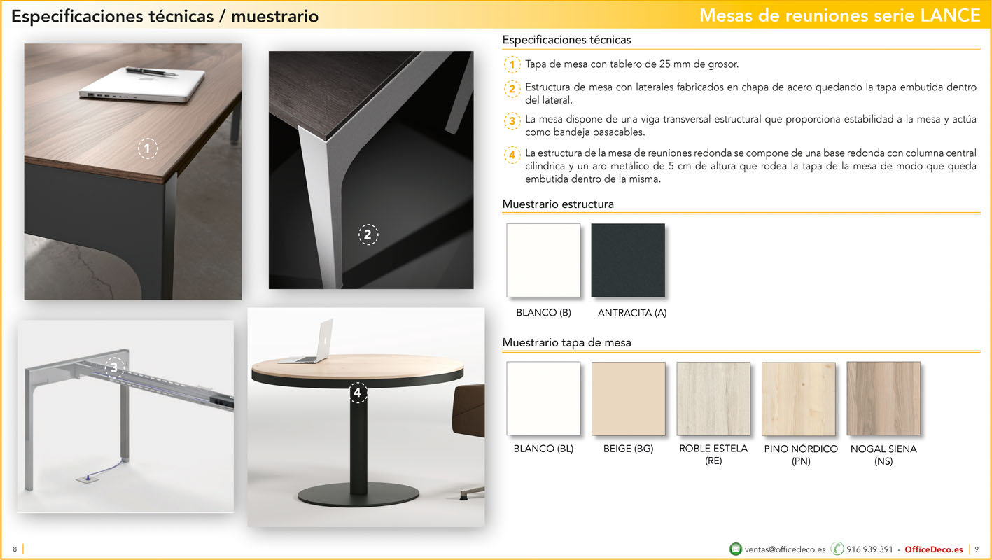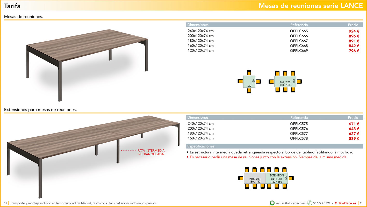 Una amplia colección de líneas de mesas de juntas serie Lance. Infinitas variantes a un precio sin competencia. Montaje y transporte gratuito en la Comunidad de Madrid, resto consultar.