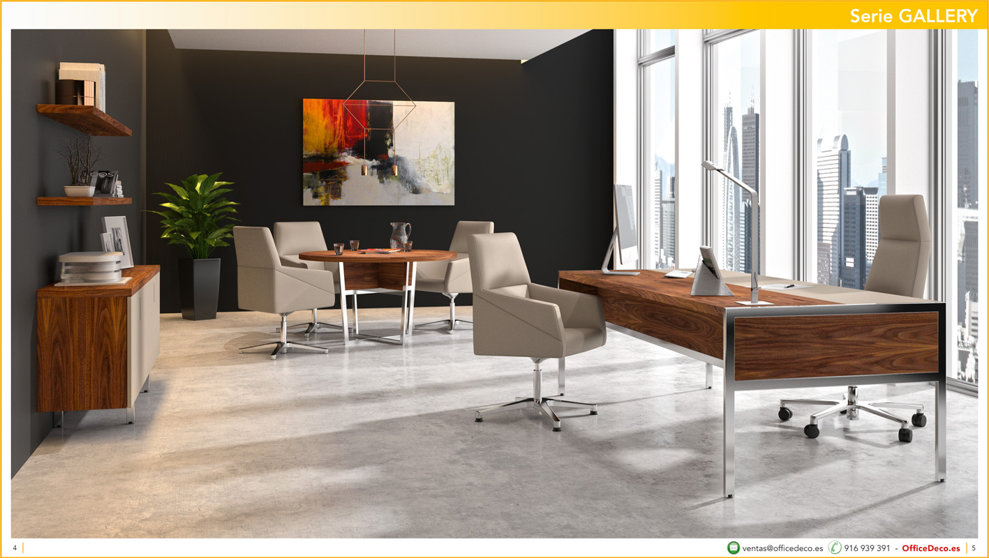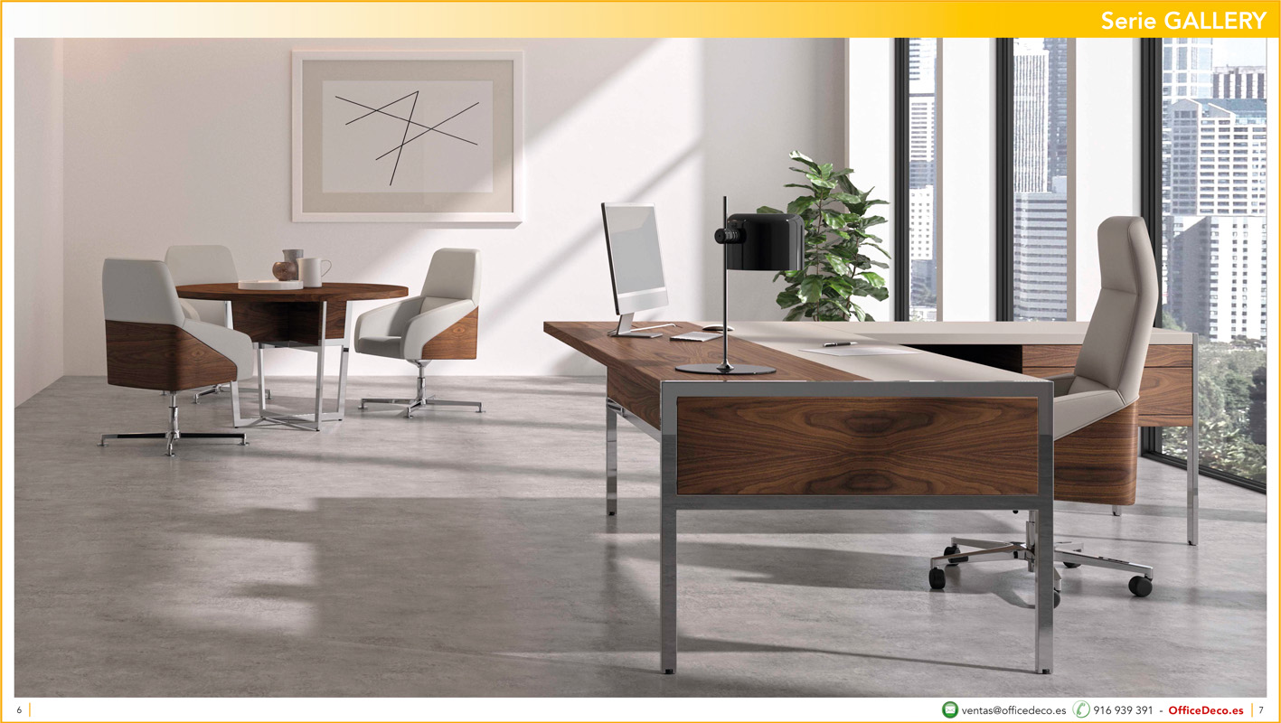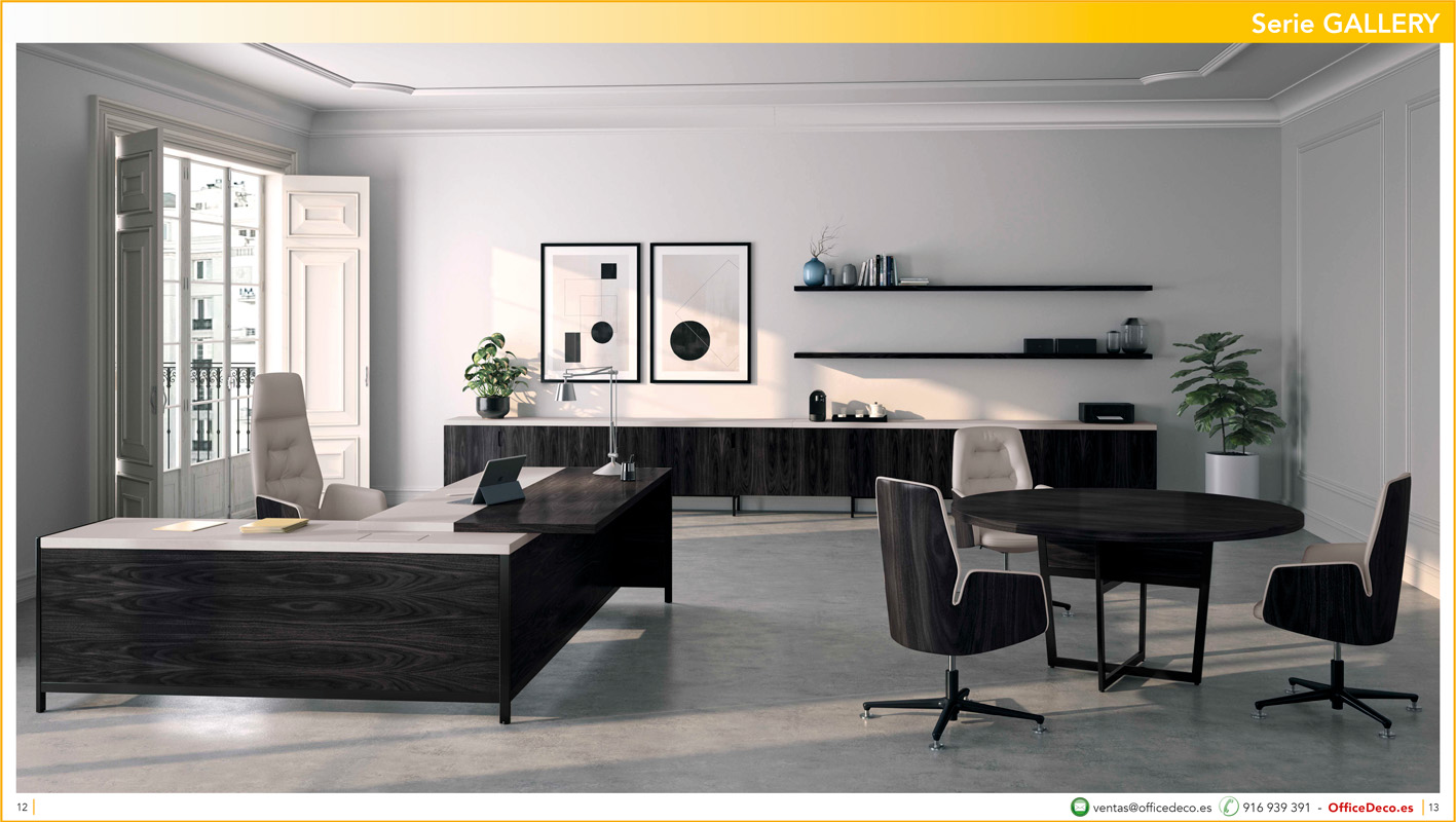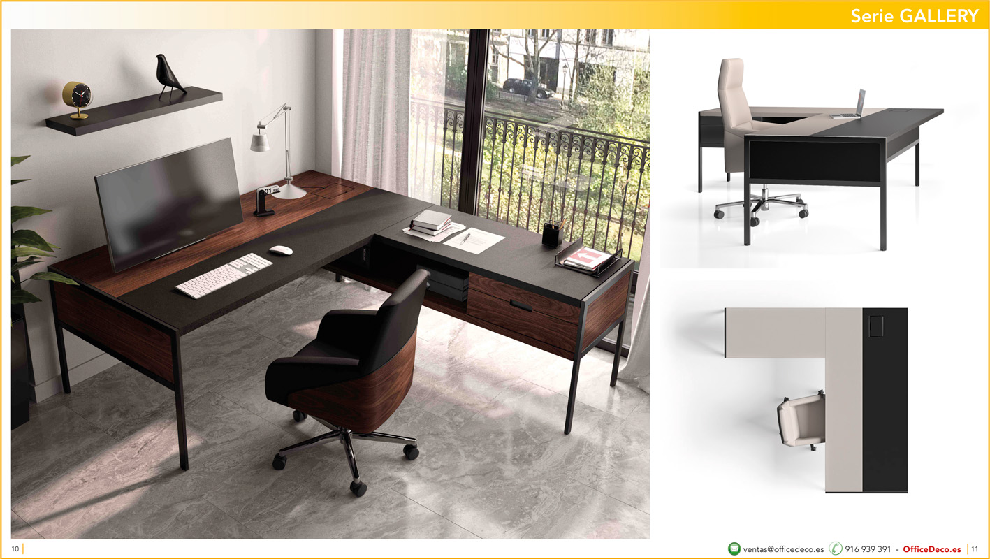 Despachos de dirección serie Gallery, un sistema de muebles de oficina inspirado en la tendencia de espacio moderno, siempre sofisticado y elegante con infinitas variantes a un precio sin competencia. Montaje y transporte gratuito en la Comunidad de Madrid, resto consultar.