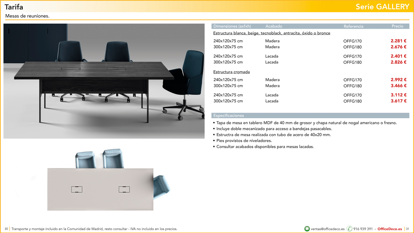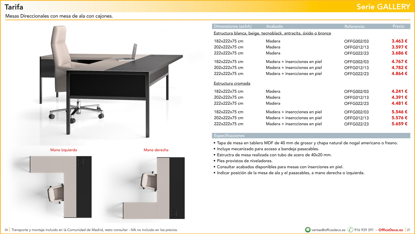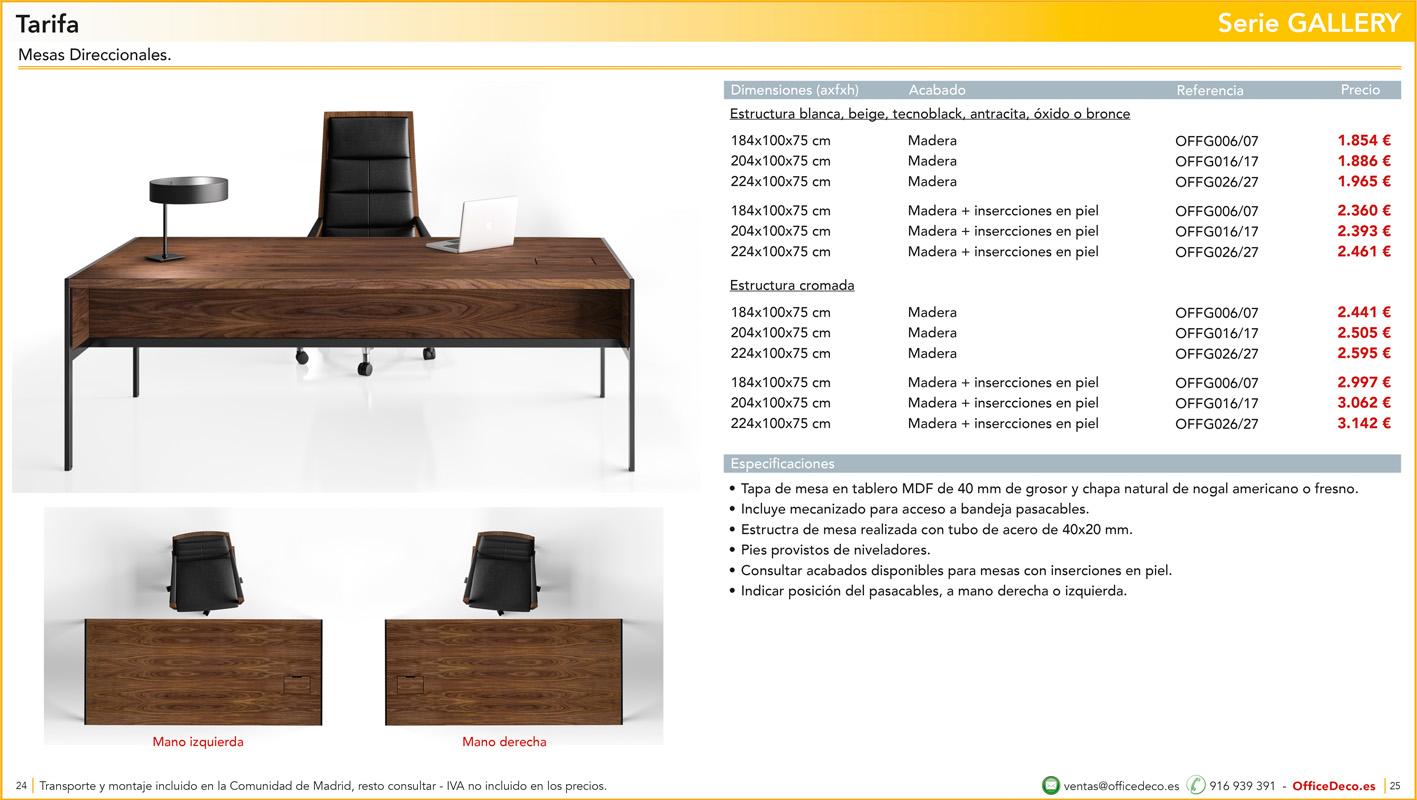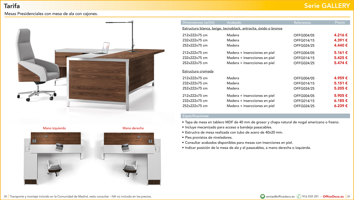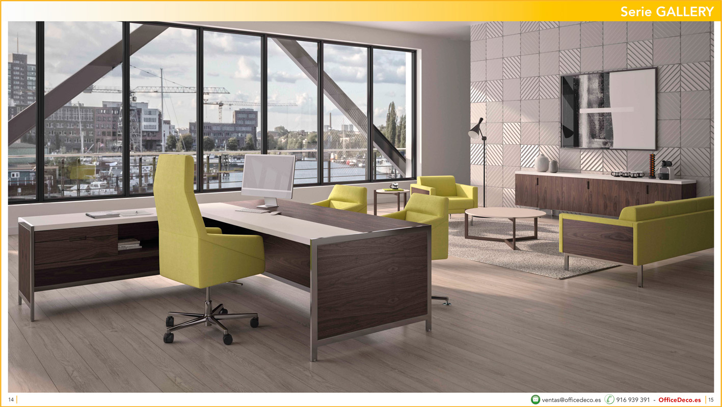 Despachos de dirección serie Gallery, un sistema de muebles de oficina inspirado en la tendencia de espacio moderno, siempre sofisticado y elegante con infinitas variantes a un precio sin competencia. Montaje y transporte gratuito en la Comunidad de Madrid, resto consultar.