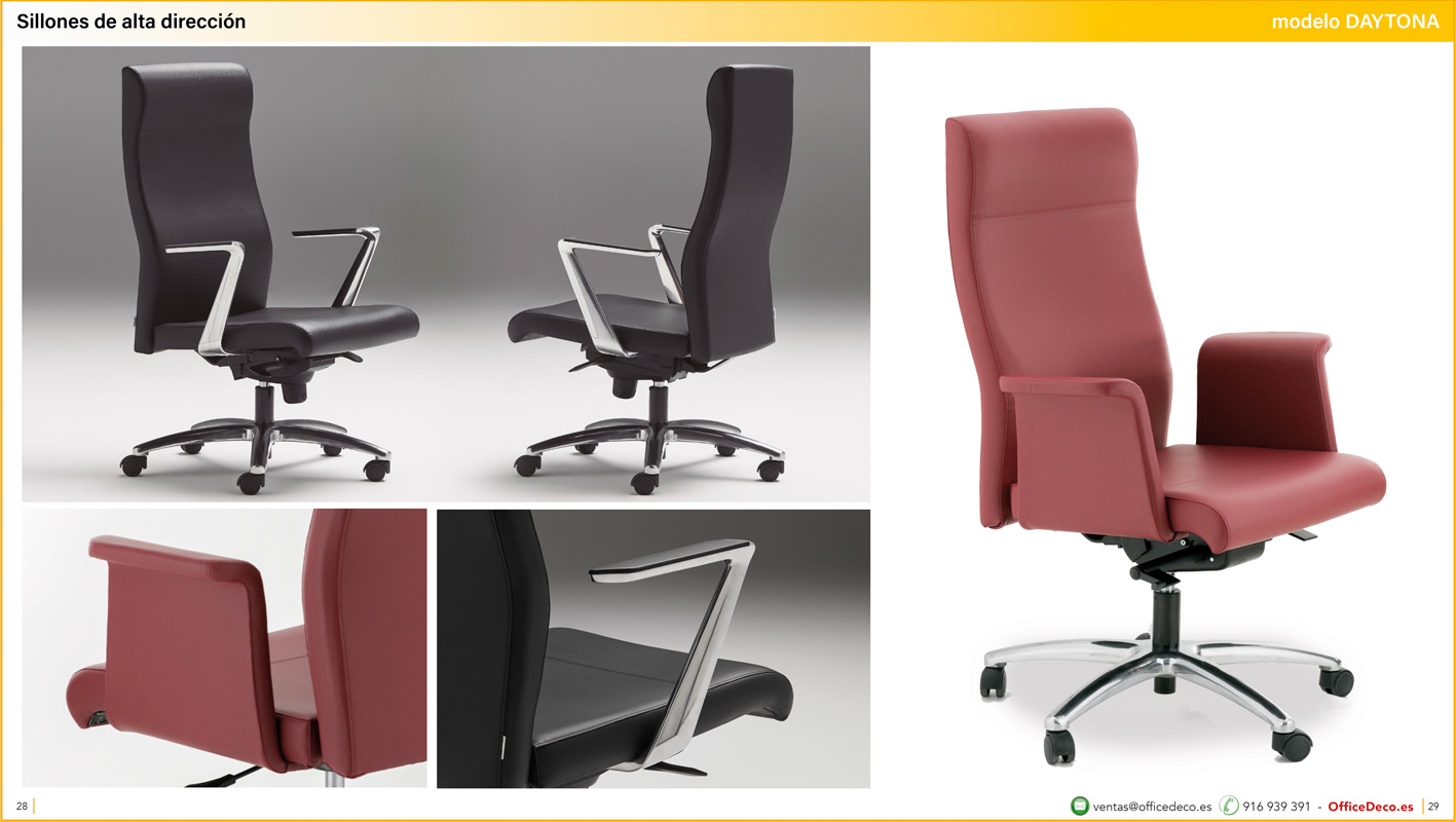 Una amplia colección de sillones de oficina de alta dirección con infinitas variantes a un precio sin competencia. Montaje y transporte gratuito en la Comunidad de Madrid, resto consultar.